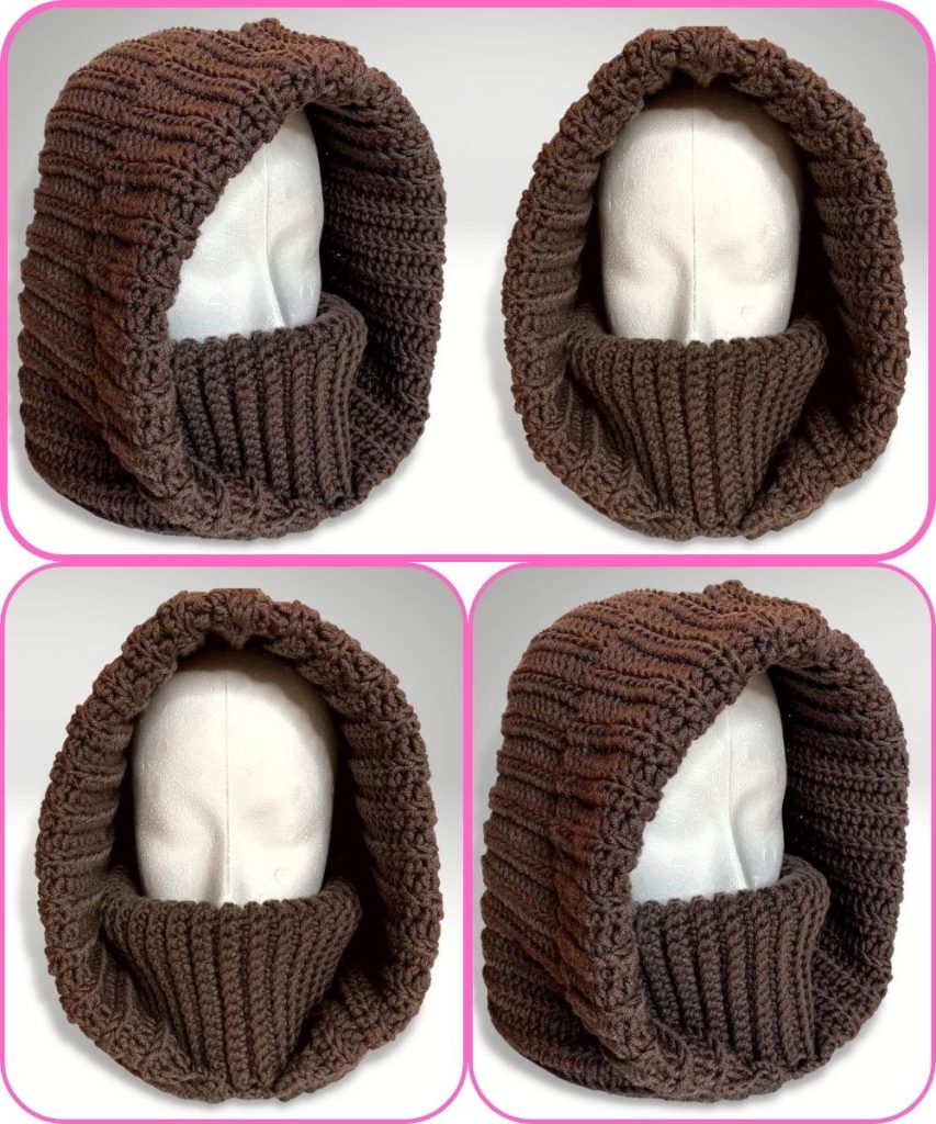 - Optional: Add ribbing around the face opening using front post/back post sc or hc for a snug fit.