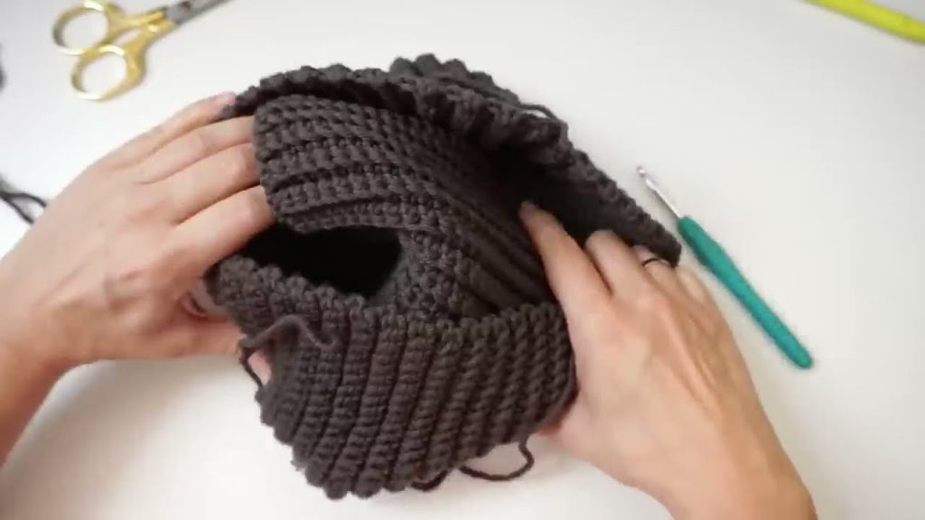 - Keep crocheting straight down until you reach just below the ears (around 7–8 inches from crown).