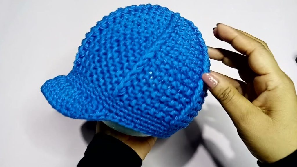 - Work single crochet (sc) evenly all around the entire hat, including the visor edge.