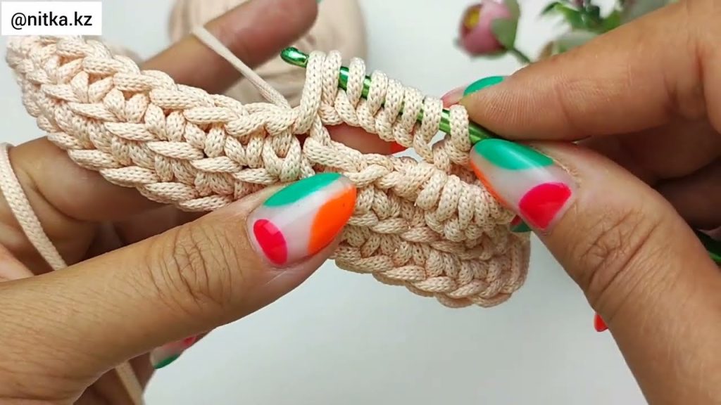 - Continue until the bag reaches your desired height (15–25 cm for a handbag).