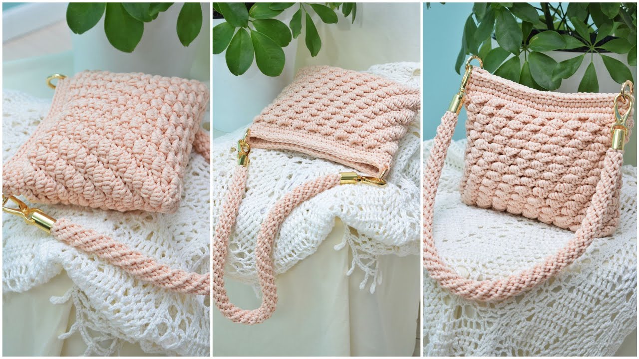 Crocheting a handbag from cord (also called macramé cord or polyester rope) gives a structured, modern look and sturdy texture. The “unusual” element can come from using geometric stitches, mixed textures, or combining different materials for the strap.