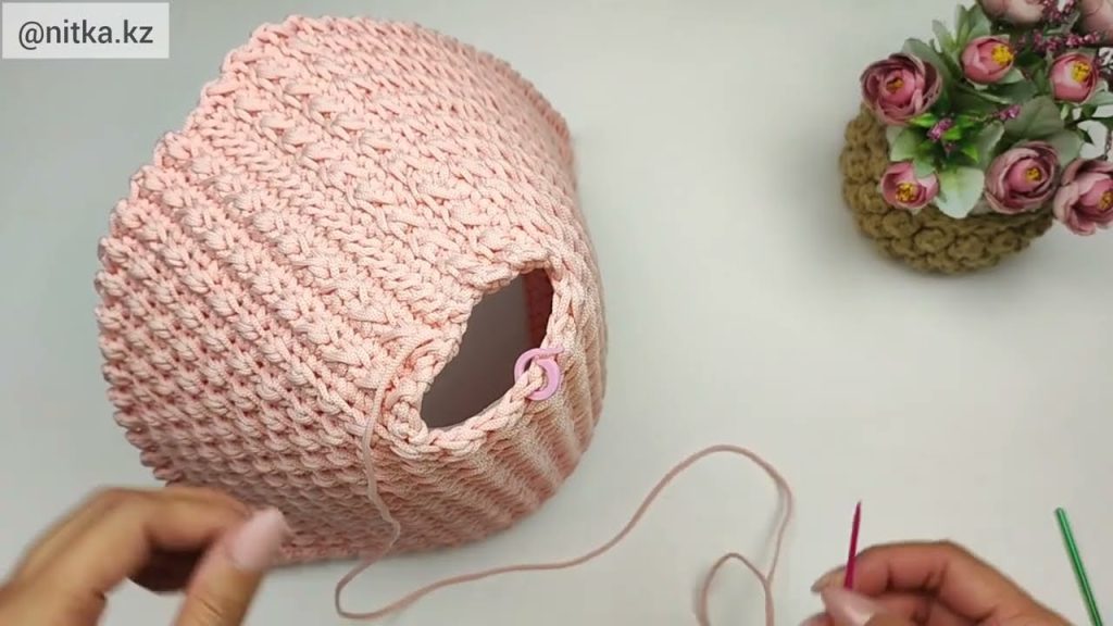- Show making holes and the first crochet round.