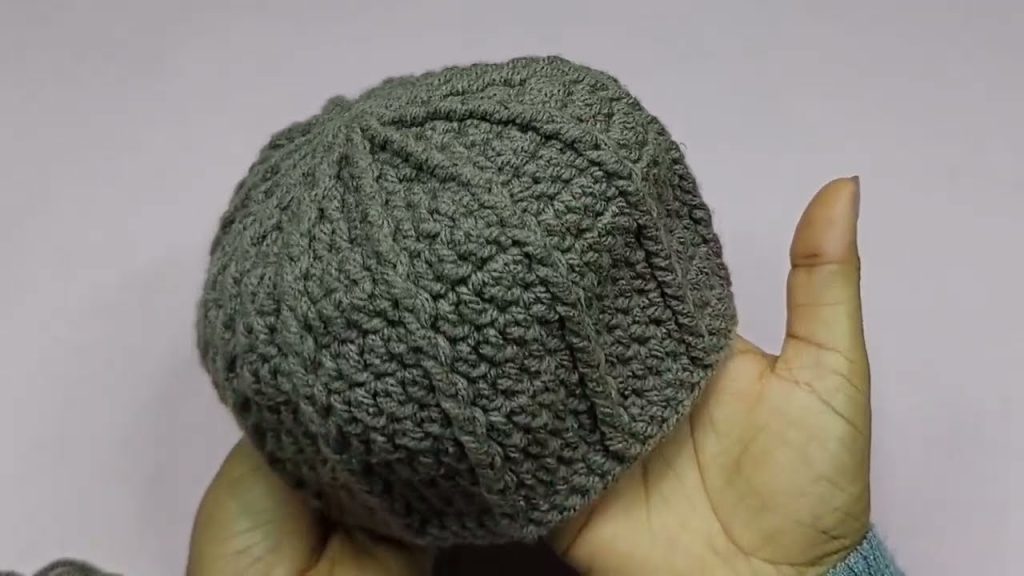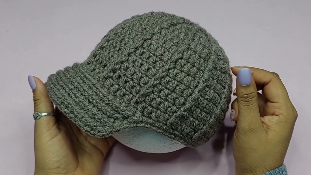 - Row 4: Continue until visor is about 2″–3″ deep or as wide as desired. Fasten off.