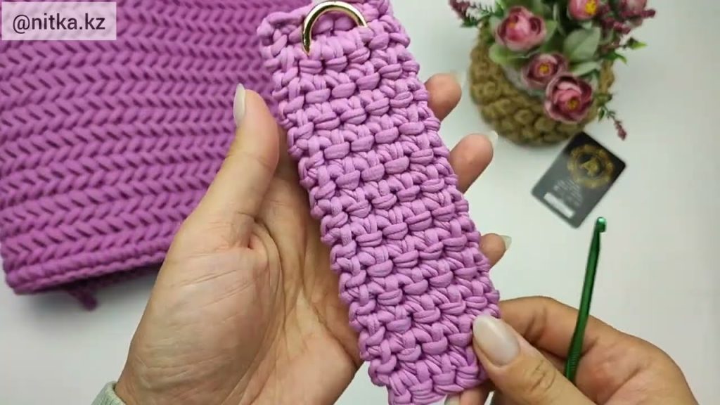 - Continue in rows until the strap is your desired length (typically 45–50 inches for a crossbody).
