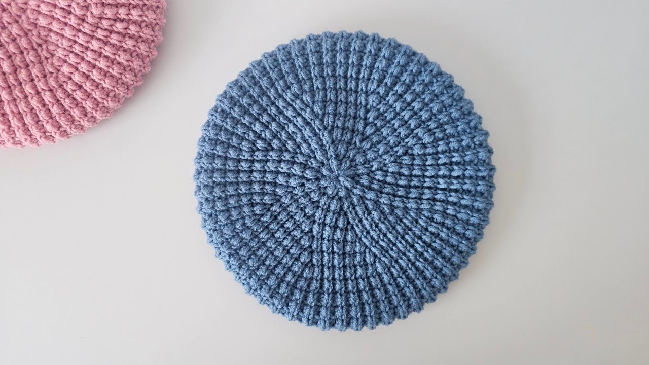- Crochet the body of the beret, adding texture (pixels) using post stitches or mixed stitches.