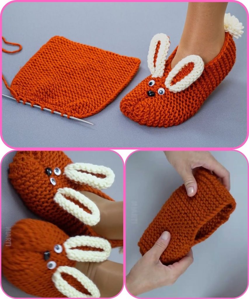 And there you have it — adorable, easy knitted bunny slippers! 🐰💕