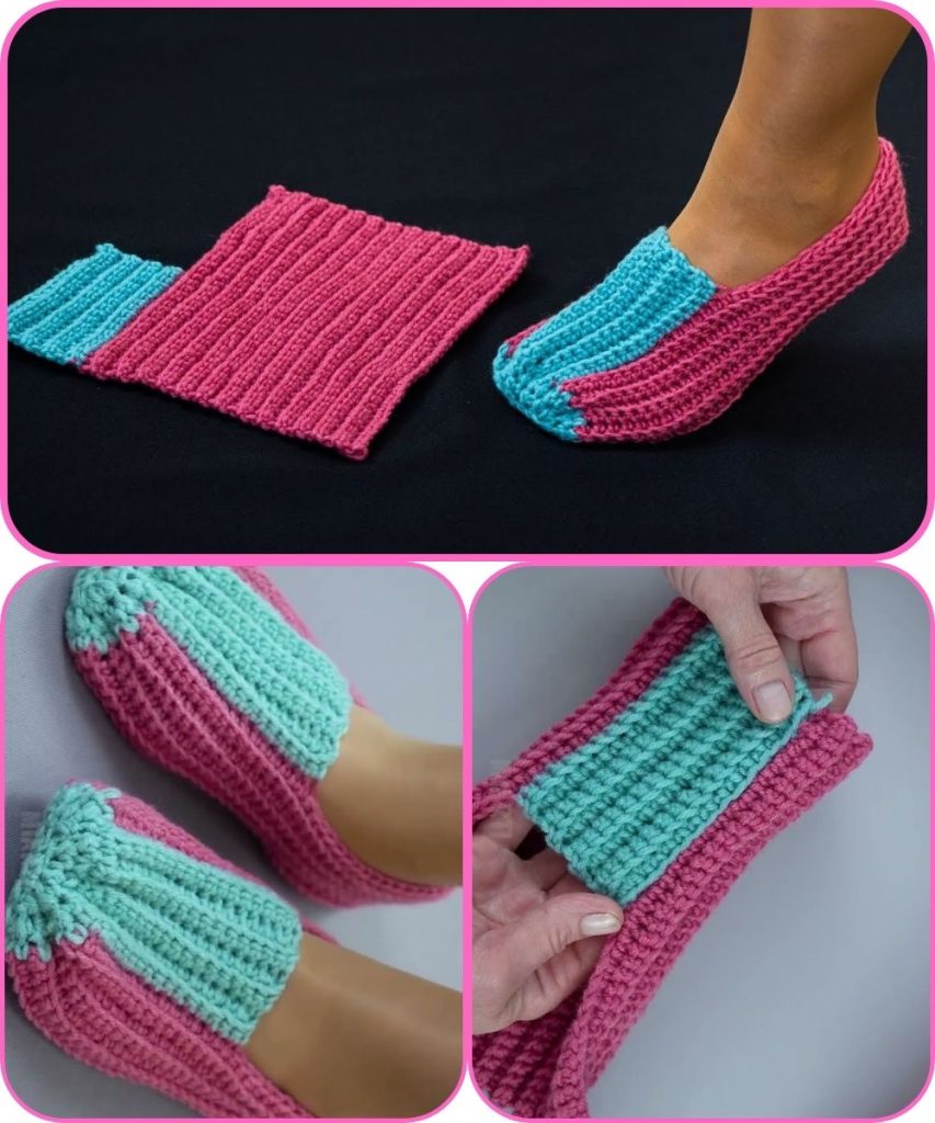 - Keep your tension even; too tight makes it hard to work, too loose makes slippers floppy.