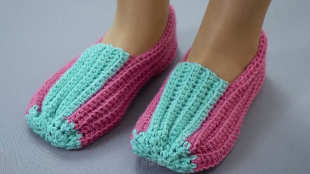 - Chain 10–12 (depending on your foot size; more chains = larger slippers).