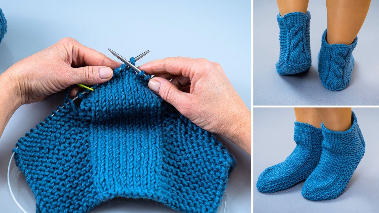- Garter stitch works best for slipper socks because it lies flat and stretches.
