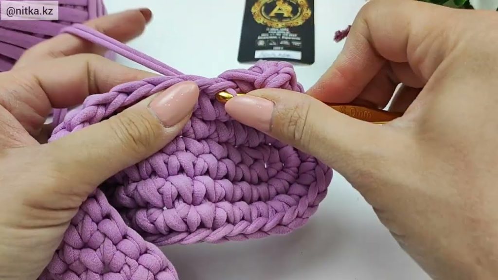 - Continue single crochet or half double crochet stitches until the bag reaches the desired height.