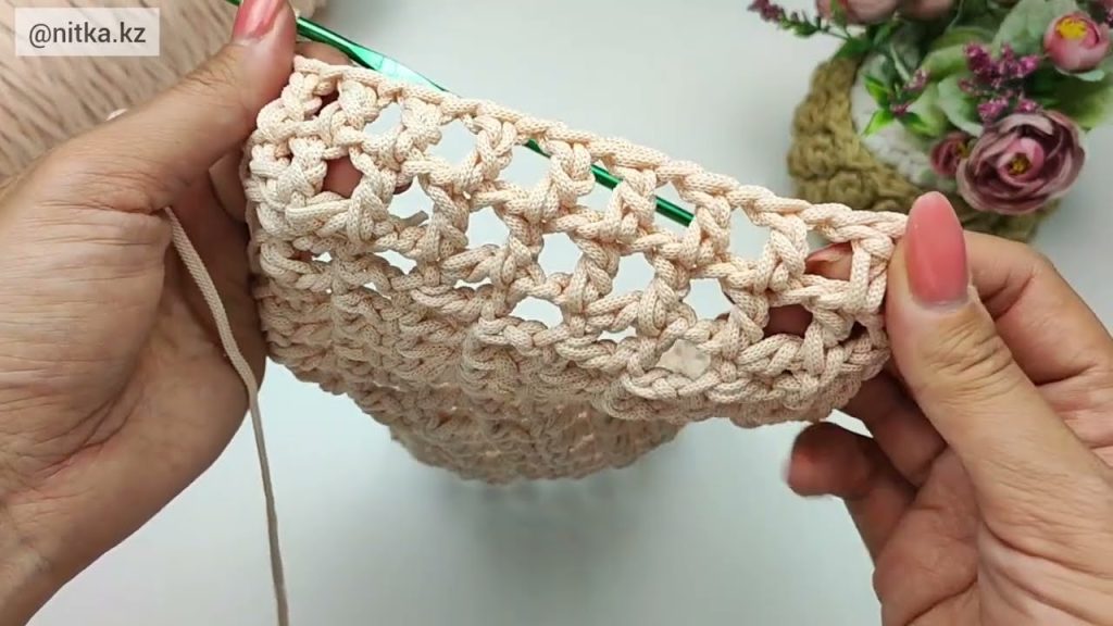 - Repeat the net pattern rows until the bag reaches your desired height