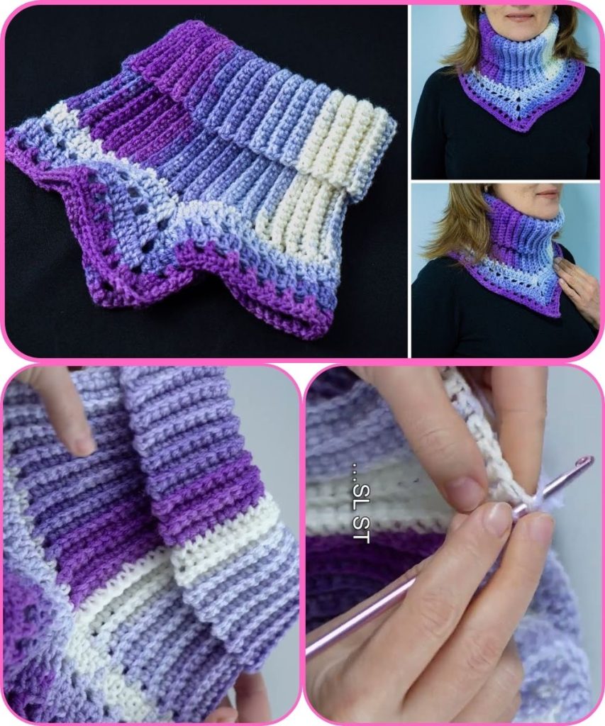 This stitch creates a neat, stretchy fabric that is great for snoods.