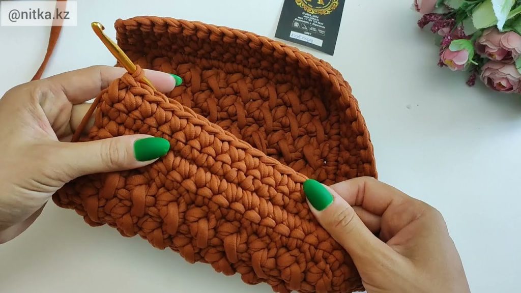 - Repeat single crochet rows until the base reaches your desired height (about 20–25 rows).