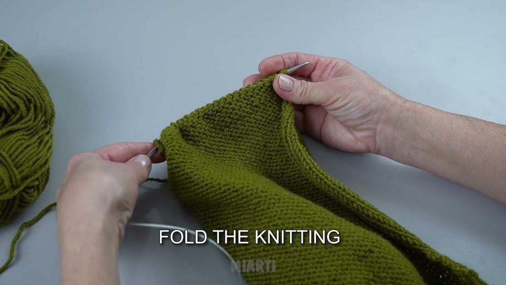 - Bind off the middle 10–14 stitches (this is the face hole)