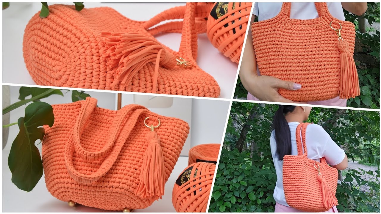 How to Make a Crochet Shopper Bag from 2 Skeins of T-Shirt Yarn