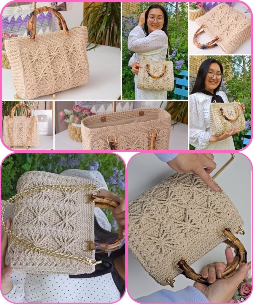 Your dream handbag is now complete—featuring a stunning three-dimensional crochet pattern, strong structure, and a unique handmade charm. Perfect for everyday use or as a special gift.
