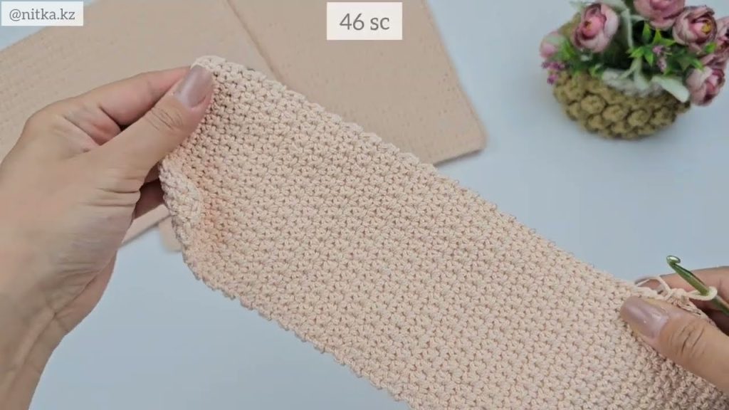 - Crochet until the bag reaches your desired height (about 12–14 inches).