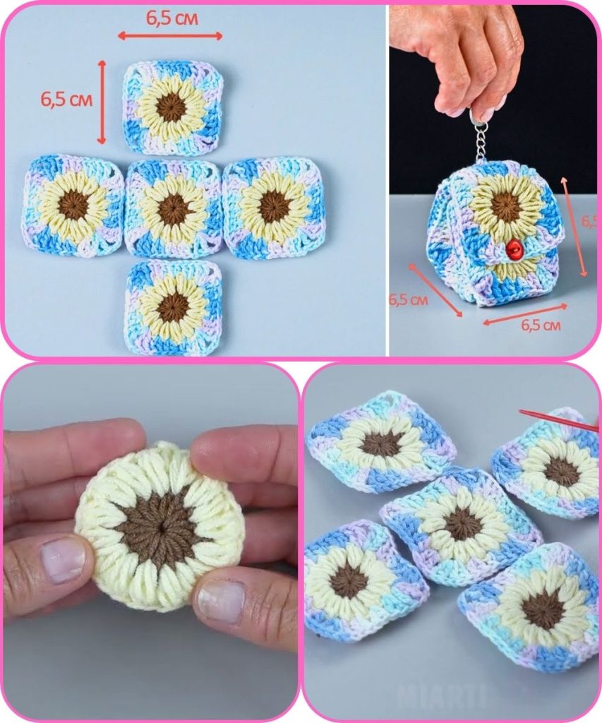 - Granny squares can be made in any size, so experiment to find your perfect wallet dimension.