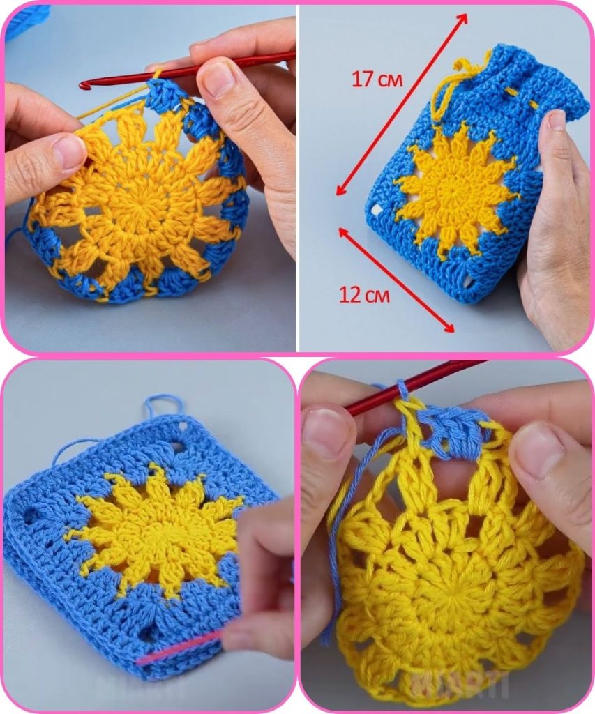 ✅ Result: You’ll have a cute, functional granny square pouch perfect for coins, makeup, or small essentials.