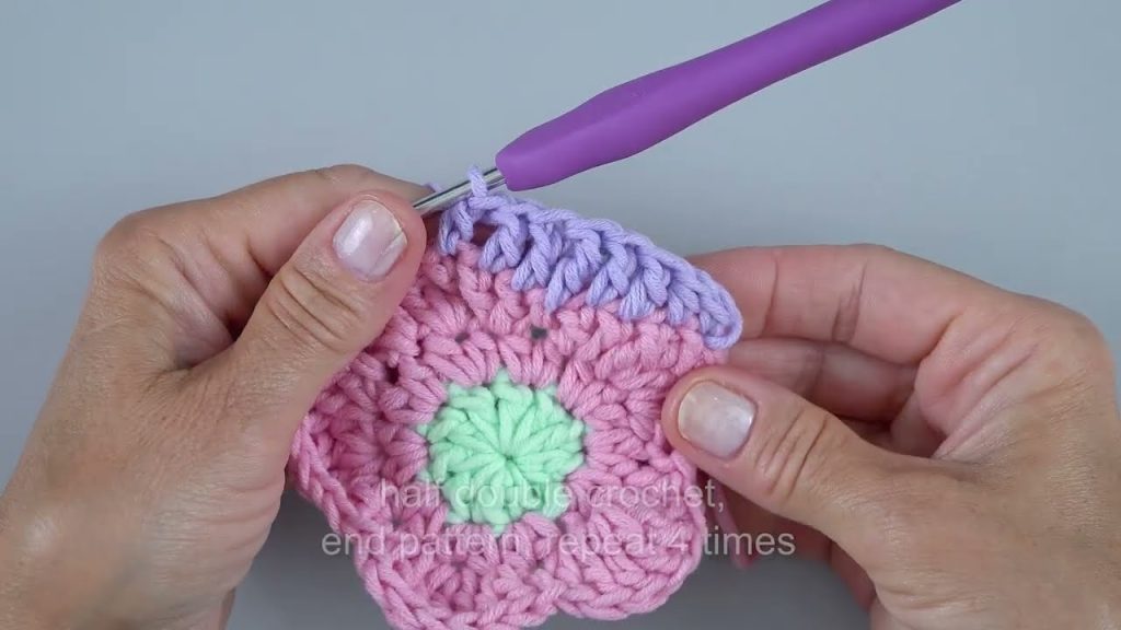 - Round 3 (Optional for bigger squares): Same as Round 2 – 3 dc, chain 2, 3 dc in each corner, 3 dc in each side space.