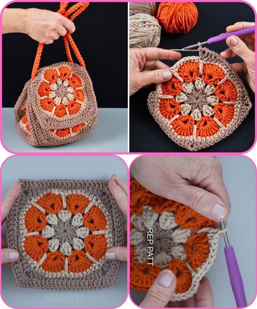 Each bag is made by joining several granny squares. You can make 6–13 squares depending on your desired bag size.