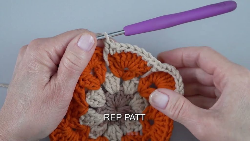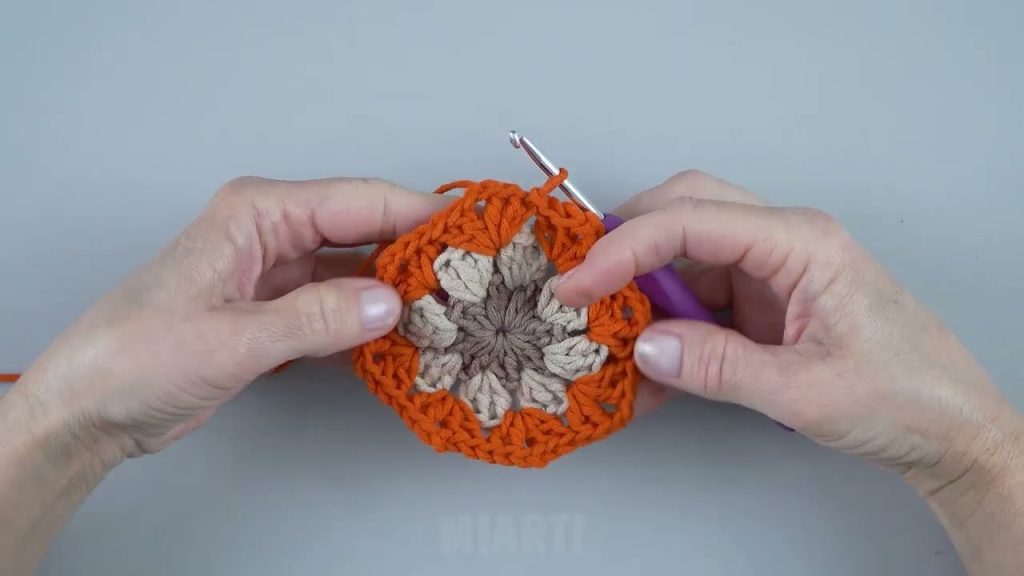 - Continue the same pattern, adding 3 dc clusters in side spaces and corners