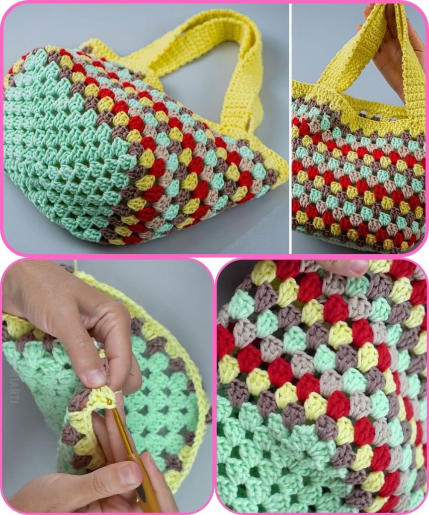 Youβve completed a very easy crochet tote bag. This simple pattern is great for practice and makes a wonderful handmade gift.