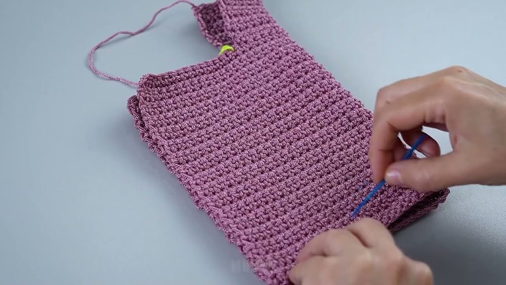 - Crochet 2–3 rows for the pocket height.