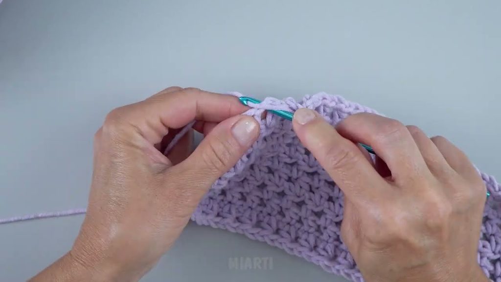 - At the end of the row, work 3 single crochets in the last stitch to turn the corner.