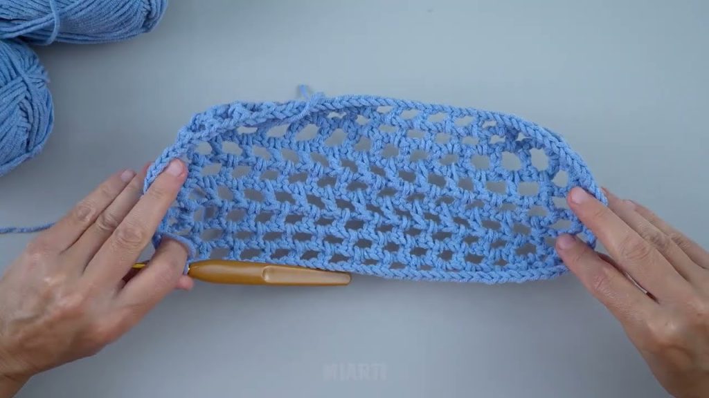 The chain spaces create the open, airy mesh characteristic of net bags.