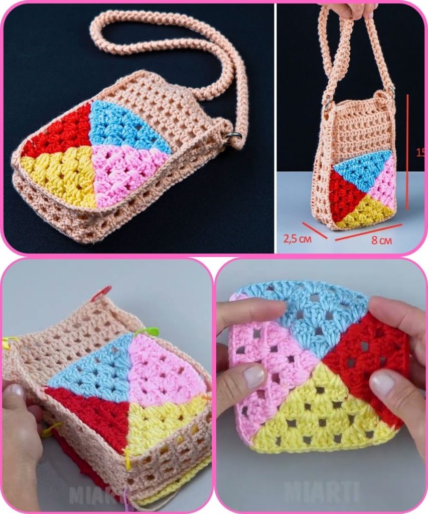 How to Make an Easy Crochet Granny Square Phone Bag – Step by Step