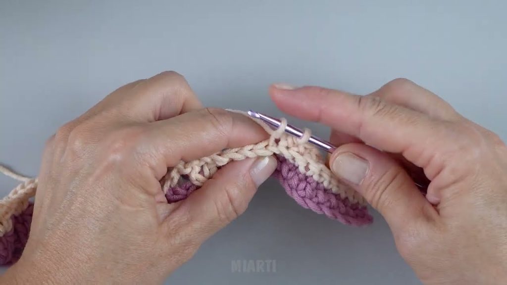 - Keep crocheting until the bag reaches your preferred height (30–35 cm).