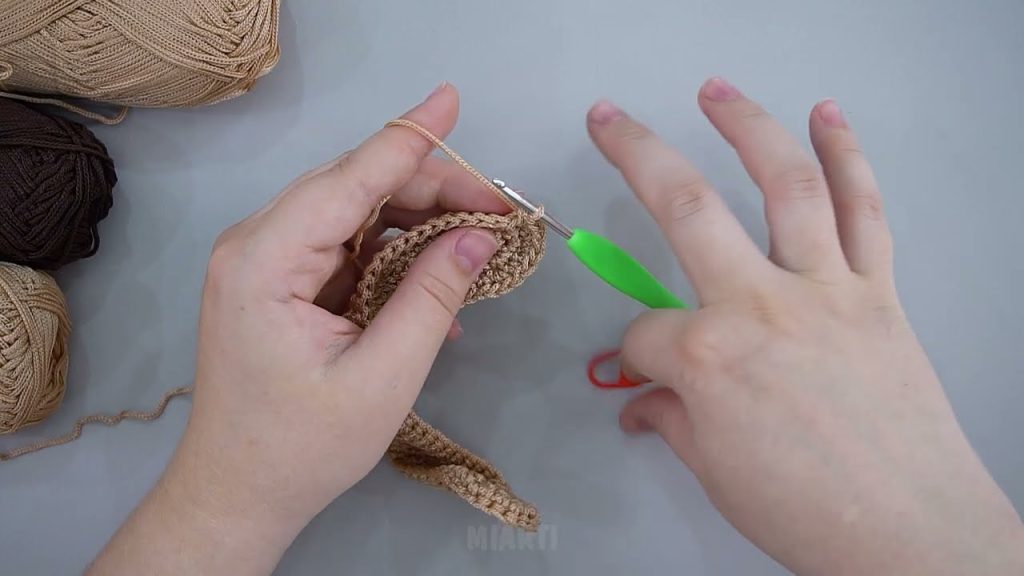 - Crochet rows of single crochet until pocket height is reached.