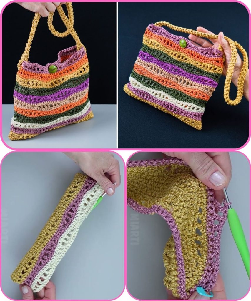You now have a beautiful Easy Multicolor Crochet Waves Bag—perfect for shopping, beach days, or casual outings. This project is a great way to practice color changes while creating a stylish handmade accessory.
