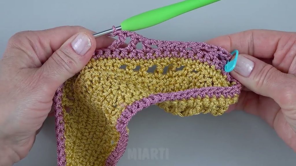 - Sc evenly around the edge.