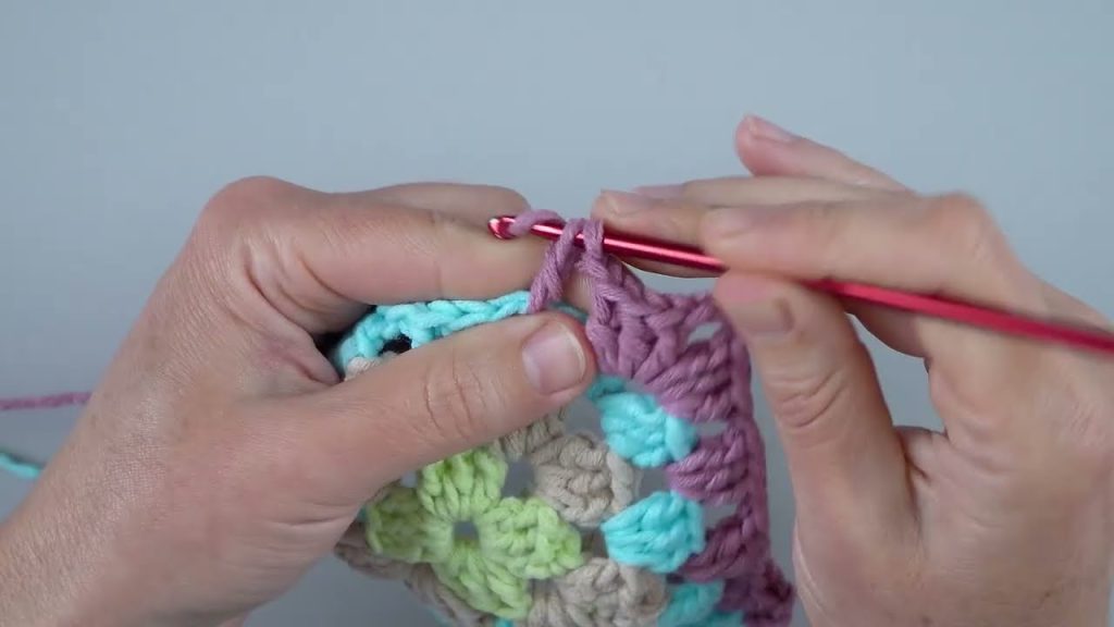 Each square is made individually. A classic 4-round granny square works well.