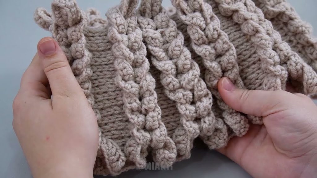 β These post stitches create the 3D cable effect.