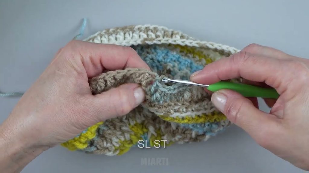 - Repeat for 4–6 rounds, depending on how deep you want the hat