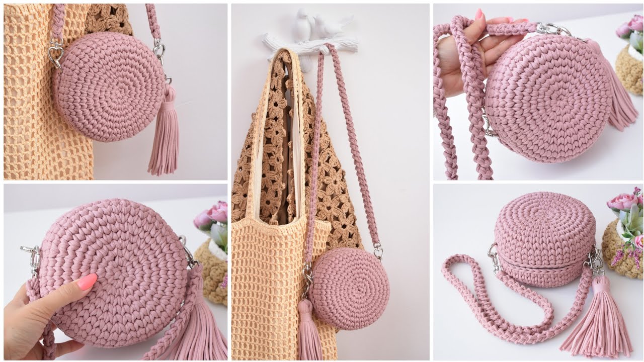 👜 How to Make a Classic Round Crochet Bag with T-Shirt Yarn