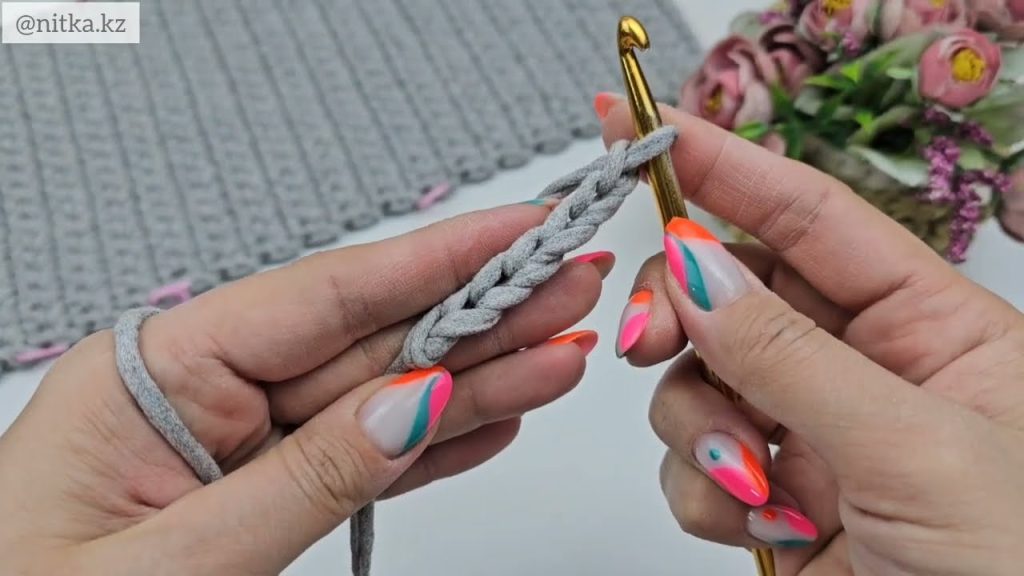 - Row 2–5 (or more): Continue in rows to form a rectangular flap