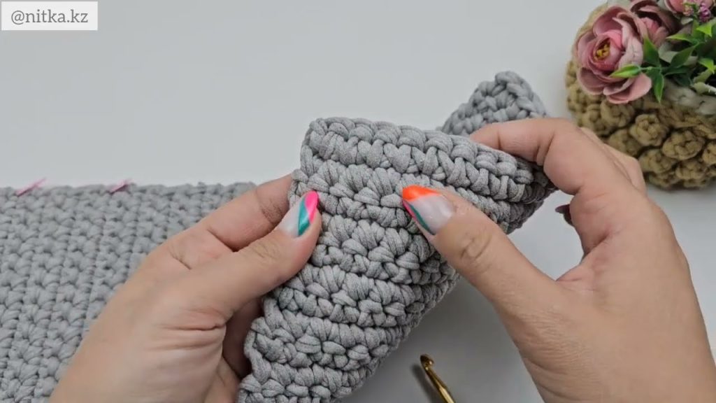 - Continue in rounds (no increases) to build the height of the bag. This creates the cylindrical sides.