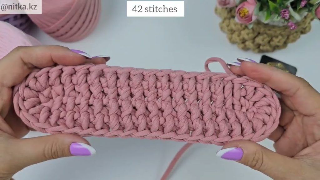 - Stop when the base is the size you want (usually 30–40 cm long for a large tote).