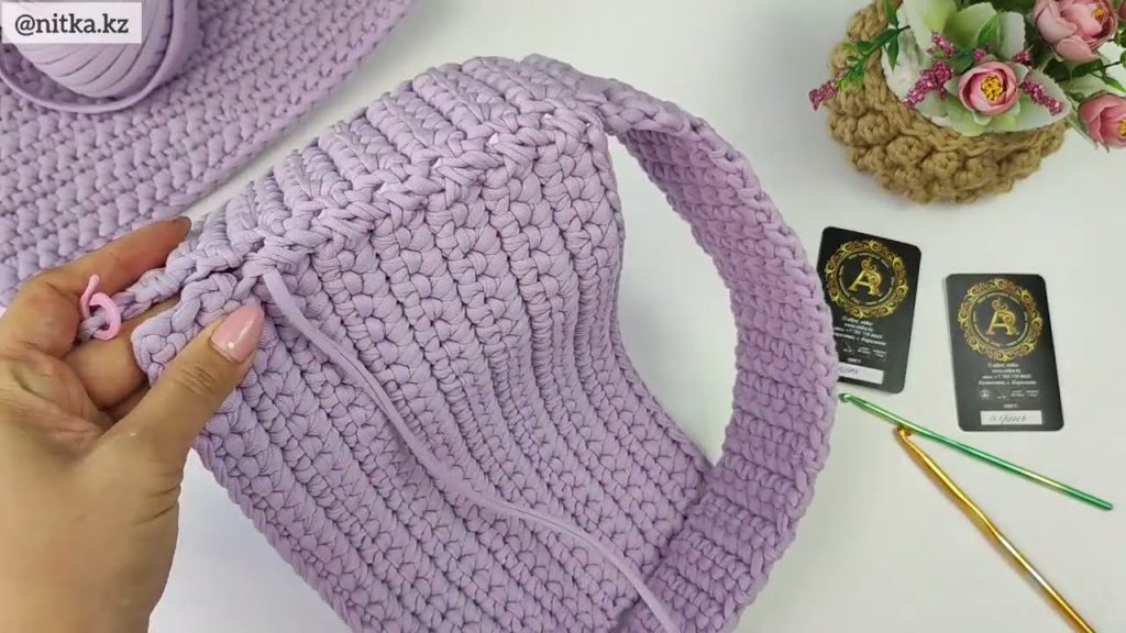 - Crochet upward until your bag is around 25–30 cm tall.
