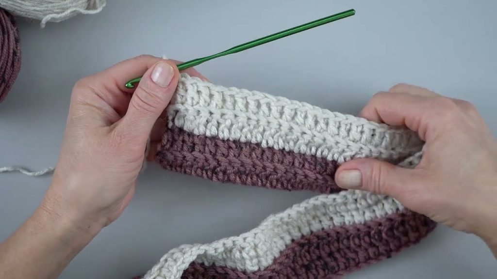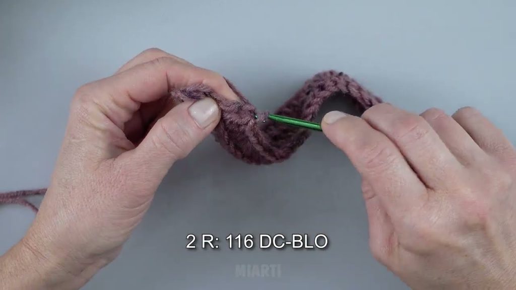 Chain 1, work front post hdc (fphdc) and back post hdc (bphdc) alternately to make a stretchy ribbed border. - Finish Off: