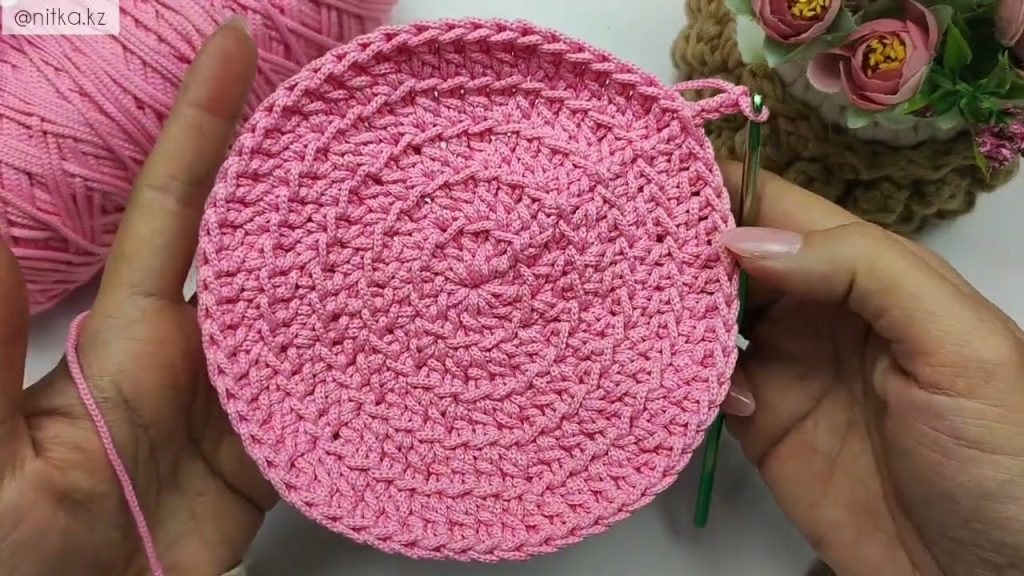 - Crochet one stitch in each stitch around (sc, hdc, or dc) for about 20–25 rounds, depending on how tall you want your handbag.